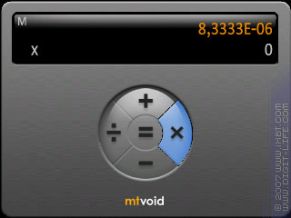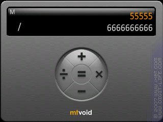 Необходимо также сказать, что «звездочка» служит для изменения знака числа, а «решетка», традиционно, ставит запятую. Правда, есть глюк: если было вбито число с запятой, а потом стерто кратковременными нажатиями кнопки «С», запятая перестает ставиться, и нужно либо выполнить какое-то действие, либо применить длительное удерживание «С», либо перезайти в программу, чтобы запятая снова стала доступна. Количество же знаков после запятой равно девяти.