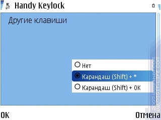 Третий пункт (или второй, если отключена автоблокировка) – «другие клавиши». С помощью этого пункта заблокировать клавиатуру можно комбинациями «Карандаш (либо Shift) + ОК» и «Карандаш + *». Скажем прямо, выбор не особо богатый, в идеале здесь хотелось бы видеть блокировку с помощью любых указанных клавиш, однако и это лучше, чем ничего.