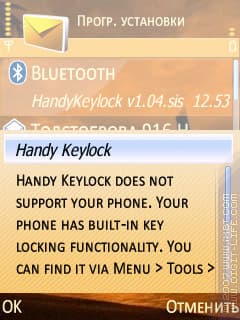 Кроме того, уже во время установки вы увидите сообщение, в котором вам будет предложено не использовать программу «Handy Keylock», так как уже есть встроенная функция автоблокировки - причем нормальная, без использования кода, и настройка задержки сделана так же, как и в рассматриваемой программе. Однако, есть один момент: встроенная автоблокировка срабатывает только из режима ожидания, а «Handy Keylock» - почти везде.