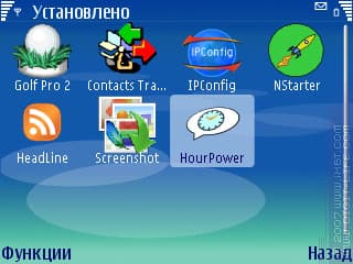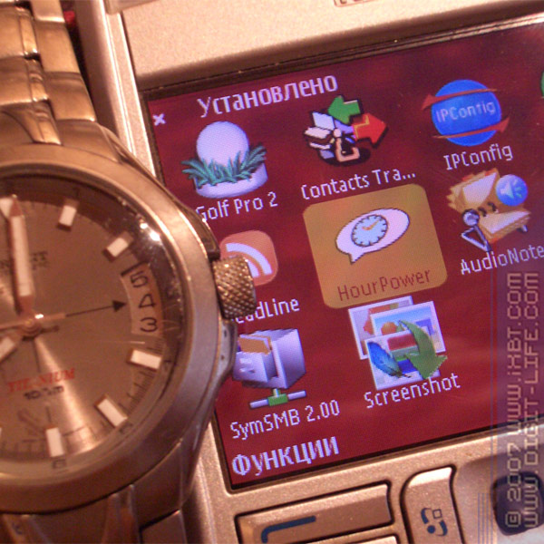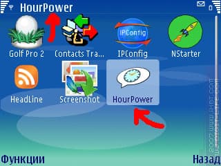 «HourPower» — программка, при запуске которой из динамика телефона раздается весьма специфический голос, произносящий текущее время. Озвучивание состояния часов происходит на одном из трех языков: English, German или French.