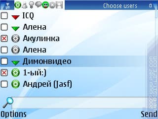 Настал черед рассказать о такой интересной возможности «IM+», как отправка широковещательных сообщений, то есть, другими словами, рассылки одного сообщения выбранным пользователям. Для этого в меню «Options» нужно выбрать пункт «Broadcast message», далее написать текст, и после этого указывать получателей. Удобно то, что при выделении, например, значка группы, сообщение отправится всем ее членам сразу. Доступен также и поиск по имени контакта, наподобие поиска в записной книге. Будет ли полезна данная функция – решать пользователям, однако бывают моменты, когда она не помешала бы.