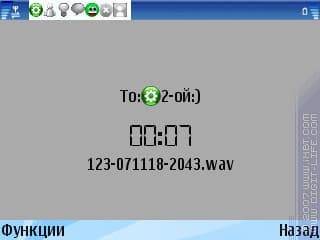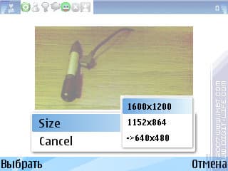Для передачи звуковых сообщений и фотографий в приложении реализованы отдельные опции. Так, чтоб передать звуковую запись, «IM+» запускает свой собственный диктофон, который можно поставить на паузу; сохраняется запись в формате «waw», после чего передается, как обычный файл. Для отправки снимка включается камера, которая также не похожа на стандартную: для выбора разрешения фотографии доступно три варианта, захват снимка осуществляется без звукового сигнала.