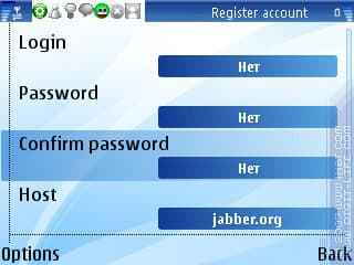 - создание новых аккаунтов в протоколе Jabber;