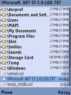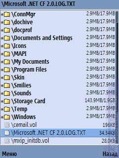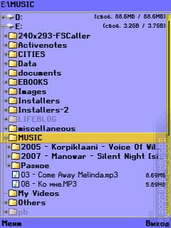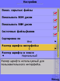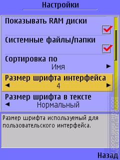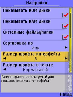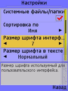 Все хорошо, в принципе, и без включения системного шрифта. Но: дело в том, что встроенная функция масштабирования работает не очень красиво, а в некоторых случаях и вовсе убого. Выглядит это примерно так: размер шрифта номер два — еще маловат, а вот номер три — уже просто гигантский. Посмотрим на примере X-plore для S60 3rd, хотя более показательный пример будет ниже.