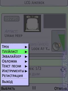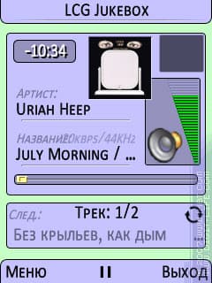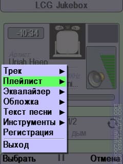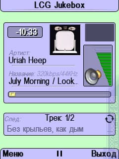 Однако, стоит отметить пару моментов. Во-первых, полезно иметь в виду тот факт, что программа LCG Jukebox не имеет функций масштабирования. Связано это с тем, видимо, что строки жестко привязаны к определенному положению на экране и вписаны в рисунок. Размер там для системного шрифта выставлен в «3», а встроенного — в «1», но именно такое форматирование для сторонних шрифтов почти всегда более мелко, чем для более крупного встроенного шрифта с большим шагом, поэтому в большинстве случаев переключение кодом «800» в системный шрифт приведет к несильному, но все же ухудшению ситуации.