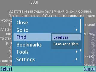 Для переносов выбирается нужный язык, функция корректно работает. Особенно понравится владельцам телефонов с маленькими дисплеями (3250, N91). Убирание лишних пробелов и переносов строк – вещи, особенно полезные при чтении плохо отредактированных текстов (например, с переносами строк каждые семь слов, как в нашем случае). В основном данными функциями пользоваться не стоит, ибо бывают ошибки в их работе, хоть и редко.