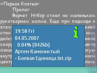 Очень удобная панель, которая показывает положение в тексте, скорость автопрокрутки, текущее время и процент прочитанного текста. Данная панель занимает очень мало места и приятно выглядит. Единственный её недостаток – обновляется только во время прокрутки текста.