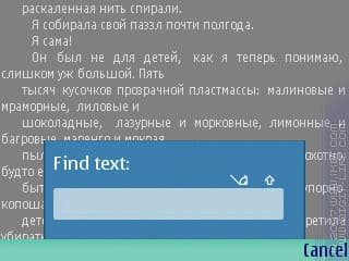 Сейчас почти не встречаются проблемы с нехваткой места на карточке, но сама возможность хороша. Приложение позволяет открывать текстовые файлы, находящиеся в архивах, если архив назван правильно: [имя текстового документа с расширением].zip. Стоит отметить, такие файлы открываются дольше, но потом работа вполне приемлема.