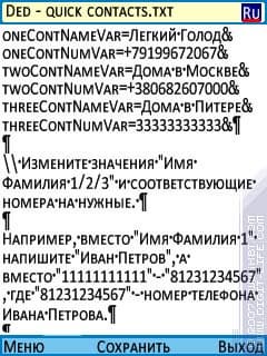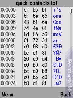 Это плохо тем, что управляющий символ меняет свое значение, с которого начинается файл, в результате, в самой программе первое имя отображаться не будет. Это касается редактирования всех трех файлов настроек. Для файла быстрых ссылок итогом будет та же неприятность, что и для контактов, — первое имя не будет отображаться. А для файла темы оформления все закончится тем, что выбранная тема не загрузится.