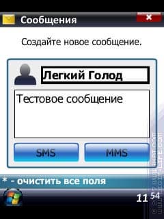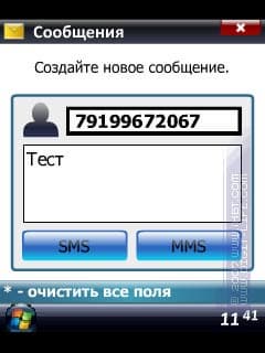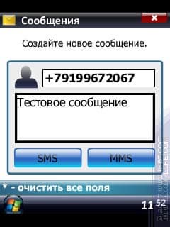 После нажатия выбранной кнопки, происходит запуск одного из стандартных редакторов — или SMS, или MMS, и в соответствующие поля автоматически вносятся значения, введенные в программе.