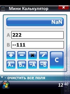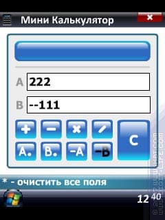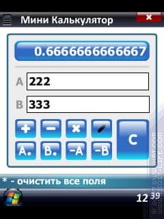 И последнее, что есть в программе — встроенный небольшой калькулятор. Пользоваться им вполне можно, если интересуют исключительно арифметические действия над двумя числами. Интересная особенность: с двумя числами можно выполнять по очереди различные действия, так как результат операндом не становится.