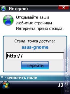 Первые два пункта программы связаны с работой браузера. В первом случае предоставляется возможность набрать адрес и открыть его во встроенном браузере. Истории набранных адресов, разумеется, не ведется, так что возможность эта сугубо косметическая.