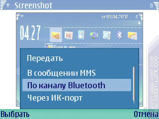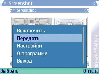 В программе есть возможность просмотра последнего сделанного скриншота, а также отправка его через MMS/Bluetooth/IrDA.