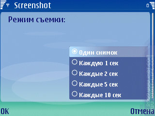 Режимы «съемки» — Один снимок, Каждую секунду, Каждые две секунды, пять секунд или десять секунд. Что интересно — из версии в версию перетекает один и тот же глюк: во-первых, ни о каких «раз в секунду» речи не идет, телефон не успевает так быстро сохранять картинки, а во-вторых, в режиме «раз в десять секунд» программа делает один снимок и выгружается.