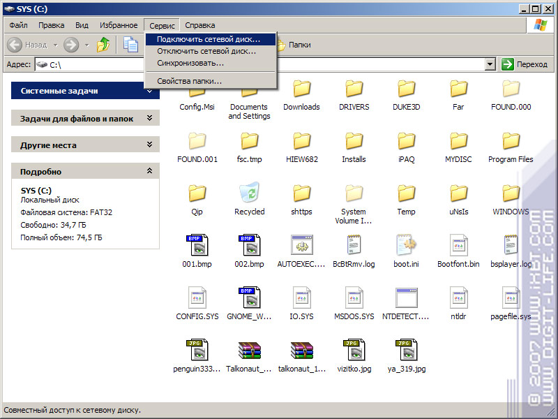 На компьютере делаем следующее: открываем любую папку (в моем случае это "E:"), а дальше в меню "Сервис - Подключить сетевой диск". В открывшемся окошке выбираем свободную букву для сетевого диска, вбиваем "\HOST_NAMESHARED" (в моем случае это "\E61Disc_E"). Потом - имя пользователя/пароль (если пароль не был указан в настройках аккаунта). И получаем еще один диск в системе, который в данном случае - карта памяти в смартфоне Nokia E61.