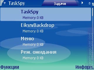 До версии 1.00 авторы свое творение не дотянули, а для третьей редакции S60 функциональность понижена, по сравнению с другими версиями. То есть, имеется весьма неприятный список отсутствующих функций. Например, не высчитывается размер приложений в памяти, везде выставлено значение «0 Кб». функция «Compress memory не работает нормально», не работает «Restart device» (перезагрузка смартфона), отключено меню «Hotkey». Другое дело, что использовать эту программу (сейчас, по крайней мере) предлагается, в основном, для убивания процессов, в довесок к программам вроде «TaskMan» и «Handy Task». Если кому-то это покажется существенным — не ставьте программу.)))