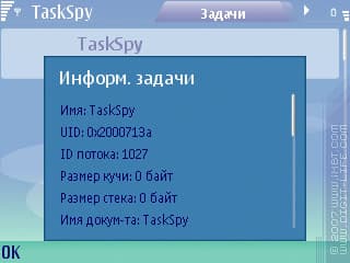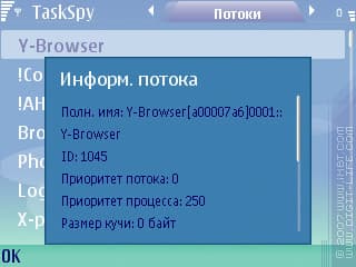 Третья закладка — «Threads». Функции — Показать детали, Убить. С учетом описанных выше недоработок, эта закладка имеет весьма сомнительную необходимость. В «информации» откровенно разочаровывают нули, аккуратно расставленные почти везде. Большая часть функций этой программы интересна исключительно разработчикам софта, поэтому предлагается не обращать внимания почти на все непонятное и неработающее. Пользуйтесь тем, что нужно реально.