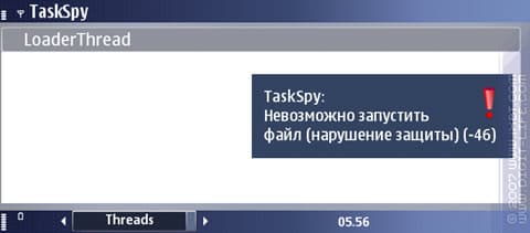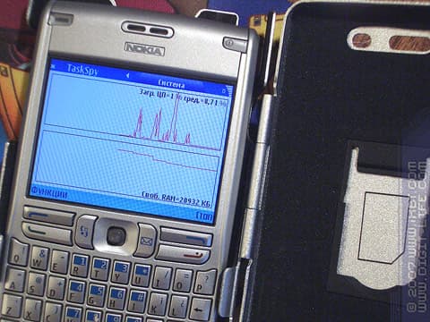 На Nokia E90 программа работает плохо. Во-первых, к работе на двух дисплеях она не приспособлена, и в зависимости от «места» запуска (в закрытом виде или в открытом был при этом смартфон) программа пытается работать либо в режиме 240х320, либо 800х352, создавая при этом известные неудобства при закрытии или открытии аппарата. Во-вторых, наблюдаются ошибки при прогрузке списков «Processes» и «Threads».