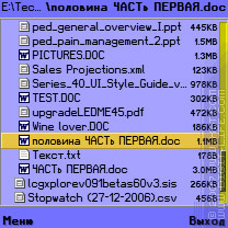 В общем, несмотря на имеющиеся недостатки, функции работы с текстом можно назвать почти новаторскими в файловых менеджерах для Series60, а кроме того, весьма полезными и нужными.