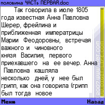 Второе — чтение вордовских файлов. Очень радует понимание русского языка. Форматирование, естественно, не поддерживается, из документа выделяется только текстовая составляющая. Скорость открывания документов сравнима со скоростью, которую выдает, скажем, «Office Suite»: файл 1.2 Мб, состоящий только из текста, открывается за 18-20 сек (у офис-сюиты — 20). Большие файлы (около 3 Мб) программа тоже открывает, времия — то же самое, что и у сюиты, около 50-60 секунд. Зато уже не вылетает, как это было в более ранних версиях.