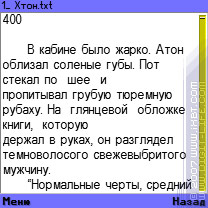 Для этого встроенного просмотрщика можно в настройках изменять размер шрифта (два варианта). А вот навигация по файлу заслуживает некоторых похвал: PageUg и PageDown работают быстр и красиво, так что «проматывание» даже довольно длинных текстов не вызовет никаких затруднений. Есть небольшой глюк: прокрутка текста работает «не в строку», то есть, не ровно по строчкам пролистывает. Имеются функции «в начало» и «в конец». Режим «fullscreen», о котором говорилось выше, работает и для просмотра текстов. Есть функция «Поиск в тексте».