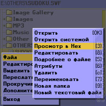 Имеется четыре метода открытия файлов. Один работает «как обычно» — то есть, так, как это сделал бы встроенный файловый менеджер: запустив соответствующее приложение, если оно вообще есть. Второй — запуск собственного обработчика. В «X-plore» таких три: просмотрщик изображений, просмотрщик архивов ZIP/RAR и файлов *.JAR, просмотрщик текстов *.TXT и *.DOC. Если файлы этих типов вам захочется открыть «как они есть», нужно выбрать в меню пункт «Open by system», в противном случае будет использован встроенный сервис открытия. Третий — «открыть как HEX» (просмотр в HEX-режиме), срабатывает на неизвестных типах или выбором через меню.