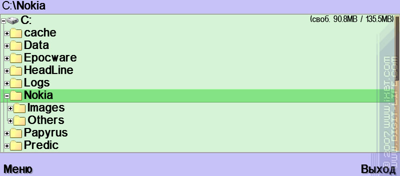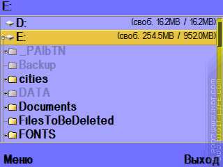 Отображение файлов вполне можно считать в полной мере наглядным, а управление — интуитивным. Вообще, файловые менеджеры, где правильно работает качание джойстика вправо-влево, использовать учень удобно, до чего, к сожалению, додумались далеко не все производители. Кому охота для того, чтобы выйти из папки, пролистывать по 50-100 файлов ввехр? А так качнул джойстик влево — вышел. Здесь качание джойстика влево внутри любой папки возвращает курсов на саму папку, еще одно качание — на уроверь вверх + закрывает папку. Тип отображения — только дерево, видов «простыня» и «иконки» здесь нет. Неудобство очевидно: чем глубже вложение, тем короче будут отображаемые длинные имена файлов и папок.