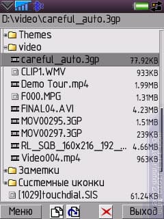 В программе появился встроенный мини-видеоплеер. Поддерживаемые форматы — MP4 и 3GP. Проверялись еще WMV и AVI, но толку от них было мало, они мини-плеером не воспроизводятся. Управление — как и для аудио: перемотка, пауза, громкость. Если видеофайл с какой-нибудь ошибкой (внутри не то содержимое, еще что-то) мини-плеер обычно вылетает, вместе с самой программой. Но очевидно, что и аудио, и видео — здесь это функции, введенные для одной цели: просмотреть перед отправкой (например, по Bluetooth). Чтобы убедиться, что отправляешь то, что нужно. Правда, AVI придется просматривать другой программой, вряд ли «Коты» захотят делать здесь просмотрщик того, для чего у них есть другая программа.
