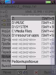 Есть возможность назначения быстрого вызова для десяти выбранных папок. Вызов будет работать как из соответствующего меню, так и комбинацией клавиш «Shift+цифра». Так думает разработчик. Но! Никакого шифта на W950 нет. Во-вторых, на M600/P990 комбинация нужна не «Shift+цифра», а «Shift+Alt+цифра» — что довольно сложно по исполнению, поэтому предлагается переводить клавиатуру в режим нажатого ALT (два раза нажать, об этом говорилось выше).