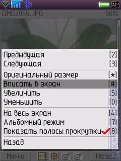 Имеется режим просмотра «Landscape» — полезен для большинства аппаратов, где ширина дисплея меньше высоты. Также интересна функция отключения полос прокрутки для вьювера картинок.