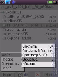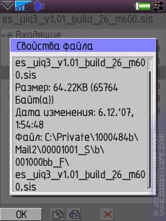 Теперь и для UIQ 3.0 появилась возможность доступа к папке «Входящие» в сообщениях. Здесь есть две очень полезные вещи: первая — открыть файл прямо внутри сообщения, без извлечения и сохранения. Вторая — функция «переместить»: при этом и файл копируется, и входящее сообщение уничтожается.