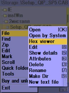 Поддерживается просмотр файлов в 16-ричном формате (HEX). Смотреть можно вообще любой файл, который видит программа X-plore, кроме некоторых (что-нибудь типа «cemail.vol») — их система не дает открыть.