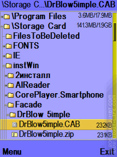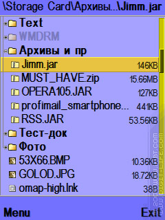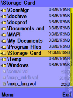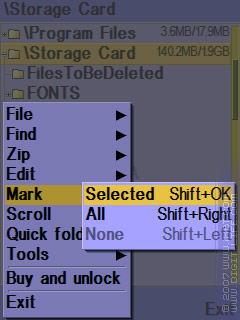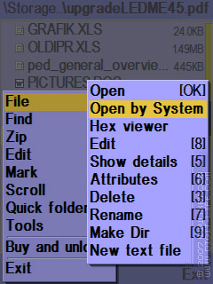 Отображение файлов вполне можно считать в полной мере наглядным, а управление — интуитивным. Вообще, файловые менеджеры, где правильно работает качание джойстика вправо-влево, использовать учень удобно, до чего, к сожалению, додумались далеко не все производители. Кому охота для того, чтобы выйти из папки, пролистывать по 50-100 файлов вверх? А так качнул джойстик влево — вышел. Здесь качание джойстика влево внутри любой папки возвращает курсов на саму папку, еще одно качание — на уроверь вверх + закрывает папку. Конечно, в других менеджерах тоже используются приятные способы (например, клваиша «2» в Resco Explorer), но вот чего там реально не хватает — это реакции на джойстик.