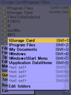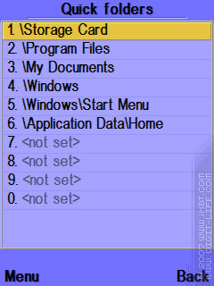 Есть возможность назначения быстрого вызова для десяти выбранных папок. Вызов будет работать как из соответствующего меню, так и комбинацией клавиш «Shift+цифра». И вот здесь-то и сталкиваемся с первой «не-до-дел-кой». Где вы видели на WM-смартфонах (у которых нет QWERTY-клавиатуры) такую клавишу как «Shift»? Вот именно, ее там нет. Собственно, это и является причиной такого геморроя с функциями «Copy/Paste» на аппаратах с WM SP. Пока решение одно: инициировать нажатие шифта какой-нибудь другой программой, например, макросами в «xBar».