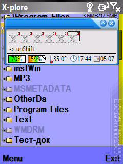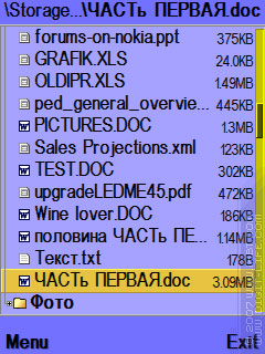 Две возможности программы достойны отдельного упоминания. Итак, это работа с текстовыми файлами и работа с файлами *.DOC (вордовские документы). Что касается первого: можно создавать и редактировать файлы *.TXT — это то, чего так сильно не хватает абсолютному большинству файловых менеджеров. «X-plore» умеет открыть для чтения или редактирования любой файл, который является в основе своей текстовым файлом. То есть, к примеру, файлы *.CSV или *.HTML могут быть открыты и отредактированы наравне с обычными файлами *.TXT. На расширение программа внимания не обращает, она смотрит тип файла, так что назовите текстовый файл хоть *.SIS, он будет открыт как текст. По-умолчанию всегда понимается Unicode плюс та кодировка, которая выбрана в настройках. Создавать можно также в двух кодировках: юникод или выбранная (для этого в меню просмотрщика есть галочка «Save as Unicode»).
