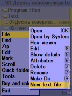 В общем, несмотря на имеющиеся недостатки, функции работы с текстом можно назвать почти новаторскими в файловых менеджерах для Series60, а кроме того, весьма полезными и нужными.