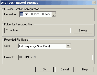 Тут же можно настроить и параметры быстрой записи One Touch Record.