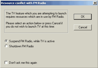 И последний интересный момент. При попытке запустить во время работы FM-приемника TV Player, получаем предложение выключить или приостановить FM Radio, причем во втором случае оно начинает работать сразу же после выхода из TV-режима. Удобно.