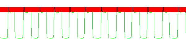 Сначала обратим внимание на красный фон — это диапазон ошибочной (избыточной или недостаточной) яркости. Так работает разгон путем повышения напряжения, подаваемого на кристалл для ускорения изменения его свойств. В данном случае практически любая операция ведет к превышению необходимых границ, что и создает те видимые артефакты с белыми тенями, о которых мы уже упомянули.