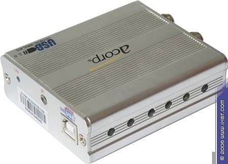 Полностью металлический корпус продолжает славные традиции аналоговых USB 2.0 тюнеров от AVerMedia Technologies Inc., видимо, в силу меньшей себестоимости пластмассовых изделий не нашедшие поддержки у большинства производителей. Выгоды такого подхода очевидны — эстетическая привлекательность, механическая прочность и хороший теплоотвод (в случае с Acorp DS120 подкреплённый дополнительными вентиляционными отверстиями).