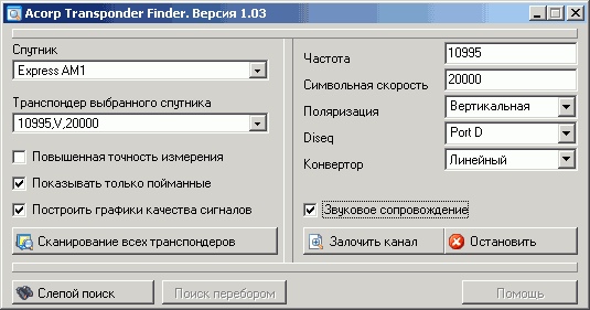 Полезным дополнением является программа ATF (Acorp Transponder Finder), способная помочь при настройке антенны.