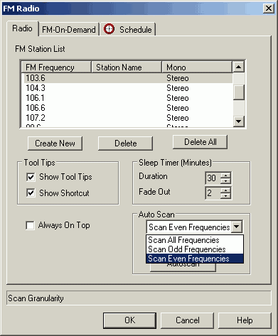 Не обошлось без странностей. Принимаемые у меня радиостанции находятся в диапазоне 90,6 МГц — 107,2 МГц. ALL-IN-WONDER RADEON X600 PRO не смог обнаружить ни одной станции с частотами ниже 99,1 МГц и выше 104,3 МГц как при сканировании, так и при ручном вводе частоты.