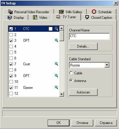 Программа настройки ТВ-тюнера предлагает два метода поиска каналов — Fast и Exhaustive
