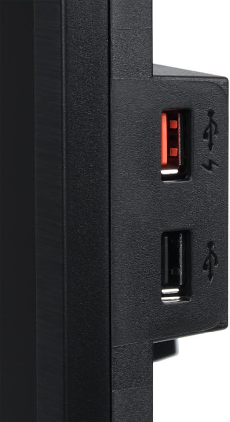 Подключать кабели к разъемам относительно удобно, но для большего удобства экран лучше перевернуть в вертикальную ориентацию. В углу на задней панели можно найти разъем для кенсингтонского замка. Два из четырех выходных разъемов USB находятся на правом торце блока экрана.