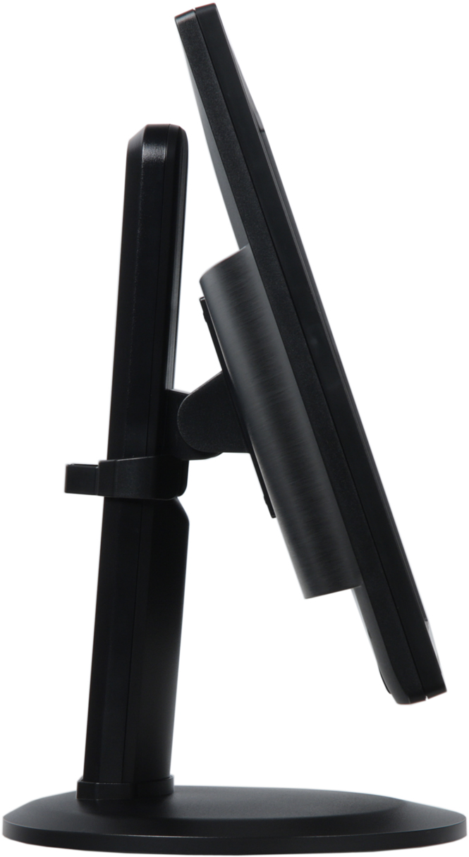 Штатная подставка позволяет блок экрана немного наклонить вперед, отклонить назад, приподнять, перевернуть в портретную ориентацию (для этого экран нужно сначала приподнять и отклонить назад) и повернуть вправо-влево.
