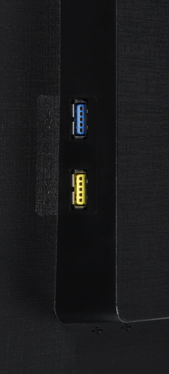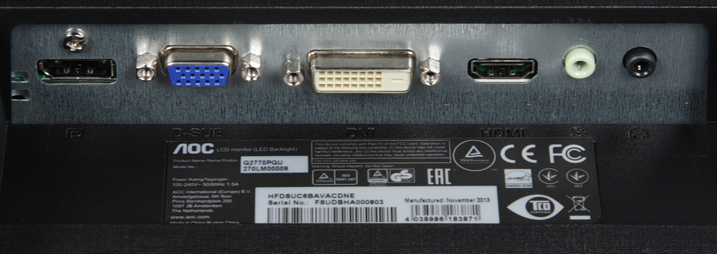 Входы HDMI и DisplayPort способны принимать цифровые аудиосигналы (только PCM стерео), которые выводятся после преобразования в аналоговый вид на встроенные громкоговорители и через гнездо миниджек 3,5 мм. К этому гнезду можно подключить внешнюю активную акустическую систему или наушники. При работе от других видеовходов звук в аналоговом виде можно завести через второй разъем миниджек 3,5 мм. Встроенные громкоговорители звучат согласно их размерам и акустическому окружению — не очень громко, без низких частот вообще, с выраженным «пластиковым» призвуком, но в целом для этого класса издающих звук элементов конструкции они не так уж и плохи. Мощности выхода на наушники хватило, чтобы в 32-омных наушниках громкость была достаточной, и даже с небольшим запасом. Качество звука в наушниках в принципе неплохое — звук чистый, воспроизводятся все частоты, в паузах шума не слышно. В монитор встроен USB(3.0)-концентратор с одним входом и четырьмя выходами, из которых два с пониженной до 2.0 версией (для стационарного подключения мыши и/или клавиатуры — расположение соответствующее), и два 3.0 с повышенной мощностью в одном (и расположены так, что к ним удобнее подключать мобильное устройство или накопитель).
