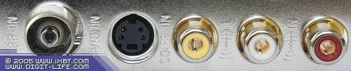 Непривычно организована коммутация. На планке, кроме антенного входа, присутствует полный комплект стандартных видео- и аудиоразъёмов — S-Video + 3 RCA.