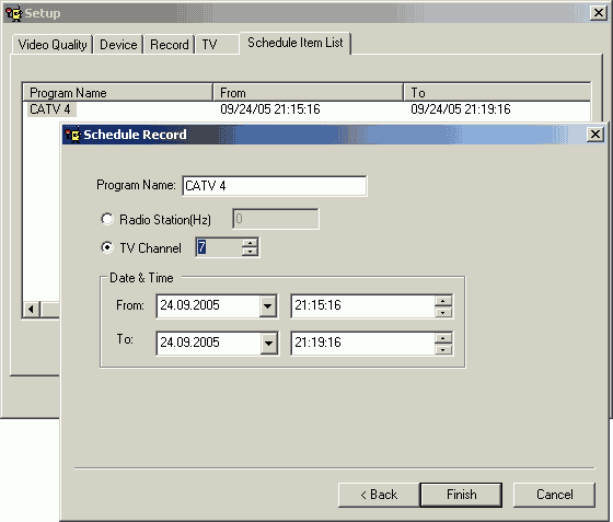 Планировщик также представляет собой привет из прошлого. Настраивается только канал и время начала/окончания записи.