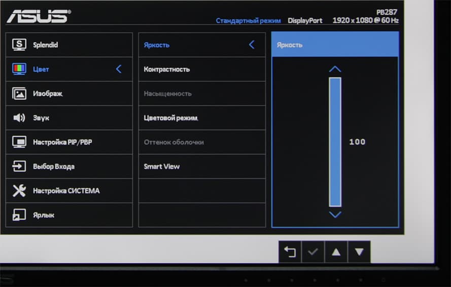 Чтобы понять, что и как меняют эти профили, можно включить демонстрационный режим Splendid Demo Mode, в котором коррекция применяется только к половине экрана. При выборе ряда профилей часть настроек становятся недоступными для изменения. При включенном режиме ASCR включается динамическое управление яркостью (яркость повышается для светлых сцен и понижается для темных). Режим Eco Mode — понижения яркости для экономии энергии. VividPixel — функция продвинутого масштабирования к разрешению матрицы. Smart View — за счет коррекции гамма-кривой позволяет уменьшать характерные для TN-матрицы искажения при взгляде под углом.