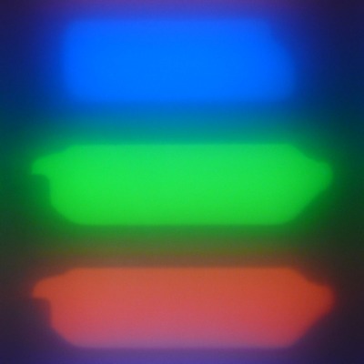 Впрочем, отклонения координат первичных цветов от вершин sRGB не очень большие, поэтому визуально цвета на этом мониторе имеют естественную насыщенность. Ниже приведен спектр для белого поля (белая линия), наложенный на спектры красного, зеленого и синего полей (линии соответствующих цветов):